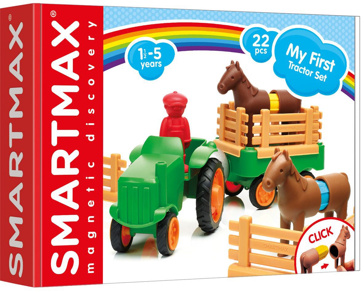 "My First Collection" fra Smart Max lader de yngste børn udforske og lege med magneter i skønne farver og former. Sættet indeholder figurer og stave. Alt sammen i en størrelse, der passer til børn fra 1,5 år og op. Byg figurerne rigtigt eller byg nye fantasifulde figurer. I dette sæt finder du en traktor, heste og tilbehør. Anbefalet alder: Fra 18 måneder.