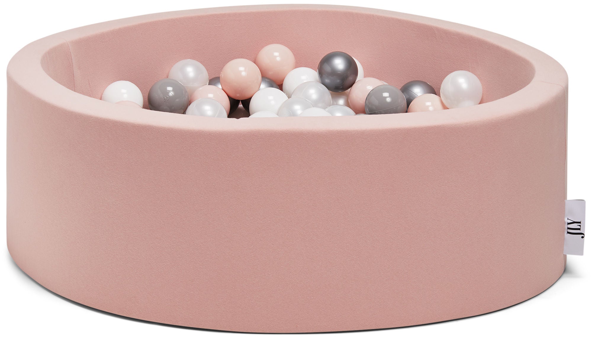 Forvandl ethvert rum til et sjovt legeværelse med dette fine boldbassin fra JLY. Takket være polyuretanskummet står boldbassinet sikkert på gulvet. Skummet får let og hurtigt sin rette form, og boldbassinet bliver et skønt sted for dit barn at lege. Dette skønne boldbassin er beklædt i blød, Oeko-Tex-certificeret bomuld og er fyldt med 150 bolde, der er fremstillet af giftfri PE-plast. Boldene kommer i farverne hvid, pearl, grå og sølv. Betrækket kan tages af og vaskes i maskinen, så du let kan fjerne pletter, hvis uheldet skulle være ude. Anbefalet alder: Fra 1 år.