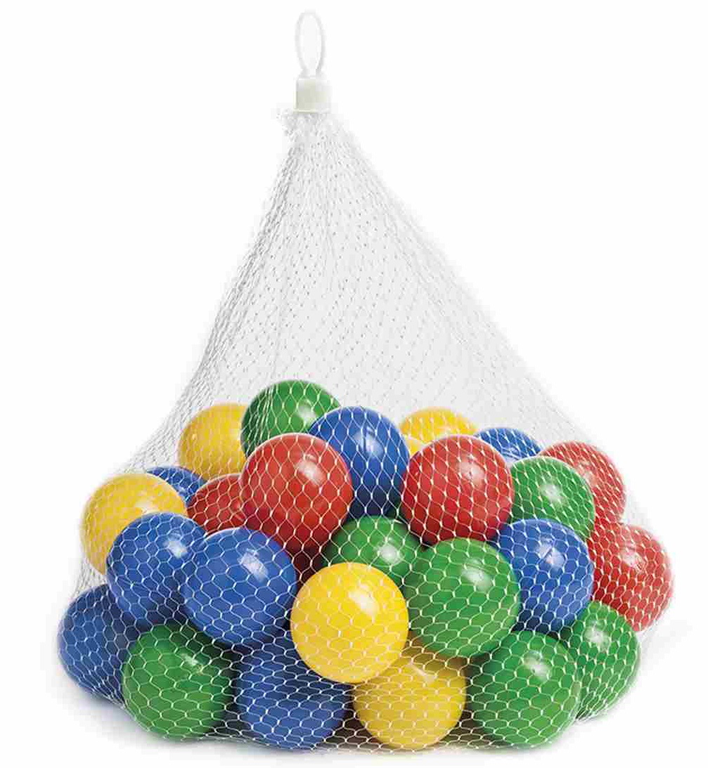 Net med 50 bolde til bad, sandkassen eller telt. Fyld et boldbur, eller find på dine egne spil Munter og farverig Letvægt I en praktisk net, klar til brug Diameter: 6 cm Emballage dimensioner: 30 x 20 x 20(h) cm Egnet til børn fra 10 måneder
