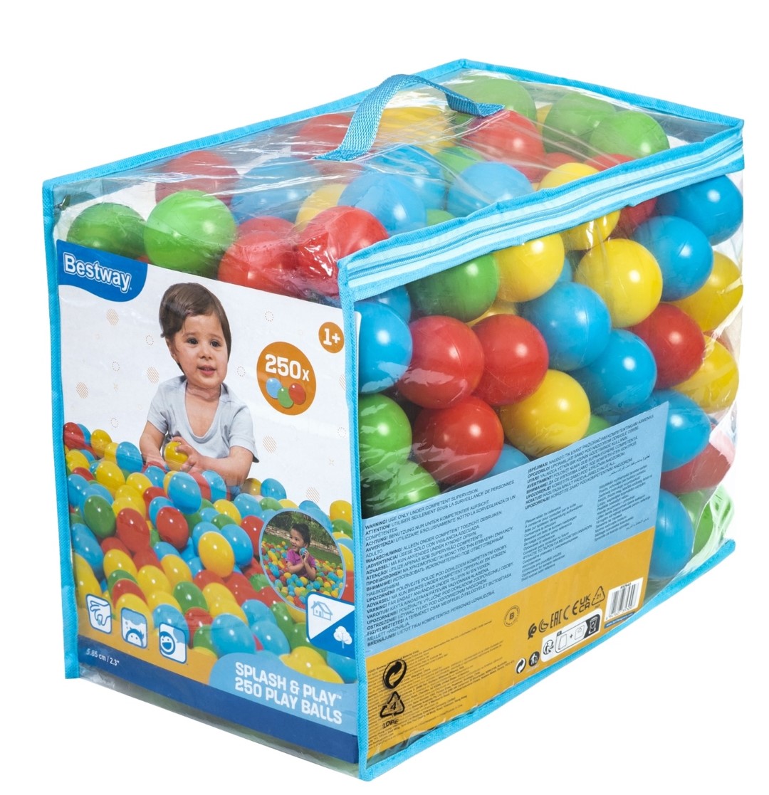 Bestway® Splash & Play™ 250 legebolde i 4 forskellige farver til sjove lærings- og legeoplevelser! Dette produkt er en fast bestanddel af legerummet. Legeboldene er gode i sig selv, men de er også en fantastisk tilføjelse til mange andre Bestway-pro