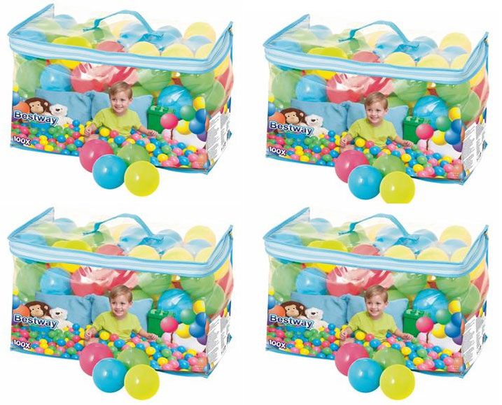 4 Tasker med hver 100 bolde - totalt 400 bolde til bad, sandkassen eller telt. Egnet til børn fra 12 måneder