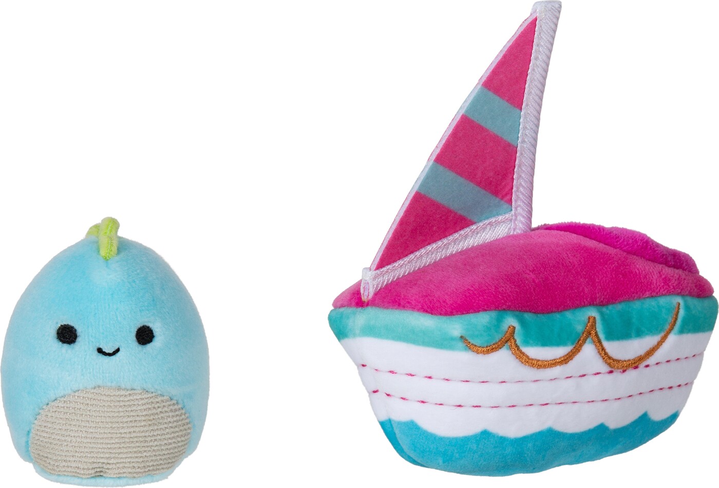 Få en mini-squishmallow, som er klar til sommersjov på havet!  Den lille squishmallow er super blød og squishy og et flot blåt udseende. Du kan sætte den ind i sin båd for at erobre havet i...