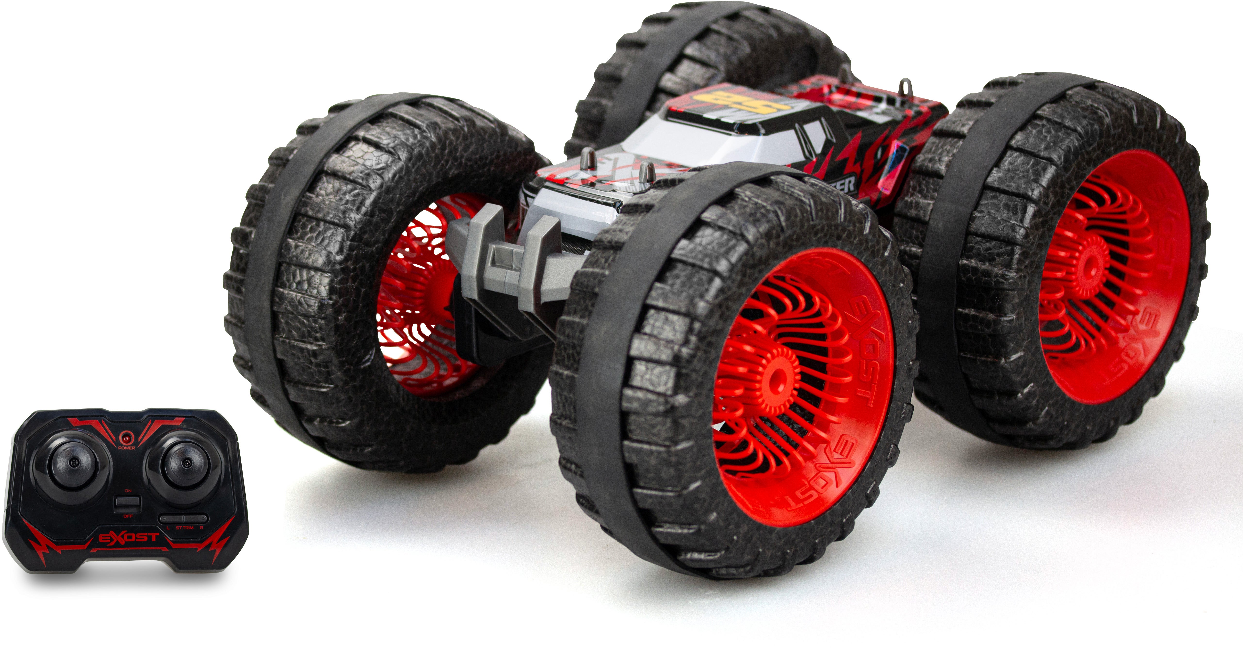 Fjernstyret bil fra Silverlit. Perfekt til fartfyldte eventyr. - Indeholder: 1 fjernstyret bil, 1 fjernbetjening. - Detaljeret design. - Tophastighed: 15 km/t. - Groft slidbanemønster, der giver et bedre greb i svært terræn og dårligt vejr. - Genopladeligt batteri via USB-C (kabel medfølger). - 2,4 GHz. - CE-mærket. - Anbefalet alder: Fra 5 år. - Batteri: 7,4V 900mAh Li-Ion (medfølger). - Batteri: 2 x AAA (medfølger ikke).
