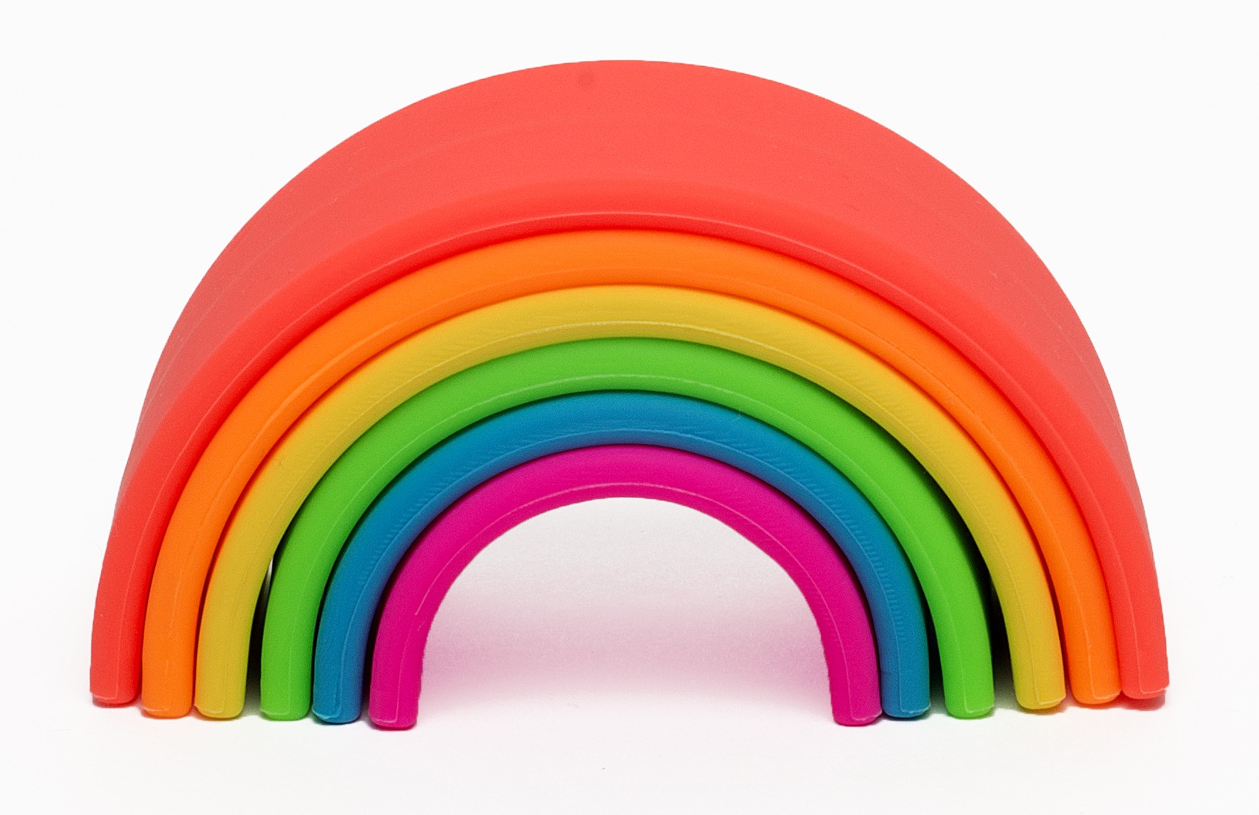 Dėna - Regnbue i silikone - Neon, 6 dele. Er velegnet til Fųlesansen,Synssansen,Finmotorik og passer til aldersgrupperne: 0 mdr.,3 mdr.,6 mdr.,9 mdr.,1 år,18 mdr.,2 år,2,5 år,3 år,4 år,5 år