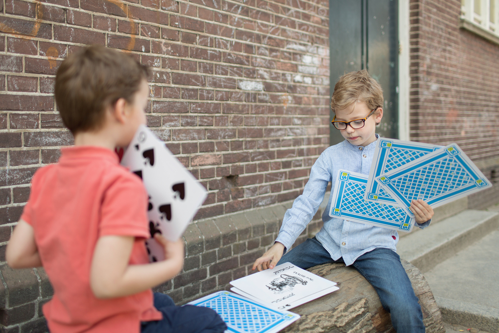 Det er næsten umuligt at spille kort i smug med disse store spillekort. Man skal ikke være så bange for at et af kortene bliver væk.De er sjove både til inden- og udendørs brug sammen med vennerne. Det giver kortspillet en helt ny dimension - bogstaveligt talt.Kortene måler 21 x 29 cm og er i lamineret plast.