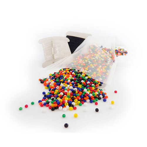 Basis sæt til perlevævning som indeholder:100 gram perler assorteret.3 specialnåleSpecialtrådNylonsnorHusk at købe væverammen til perler også, så I kan komme godt fra start med at væve med perler. Sættet er ikke til børn under 5 år, og vi anbefaler, at du venter, til dit barn har godt styr på finmotorikken. Nålen er spids.