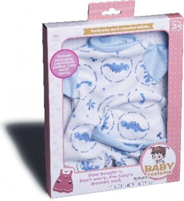 Babydukkens blå sparkedragt er så flot som den smukkeste himmel. Det bløde stof er helt dækket...