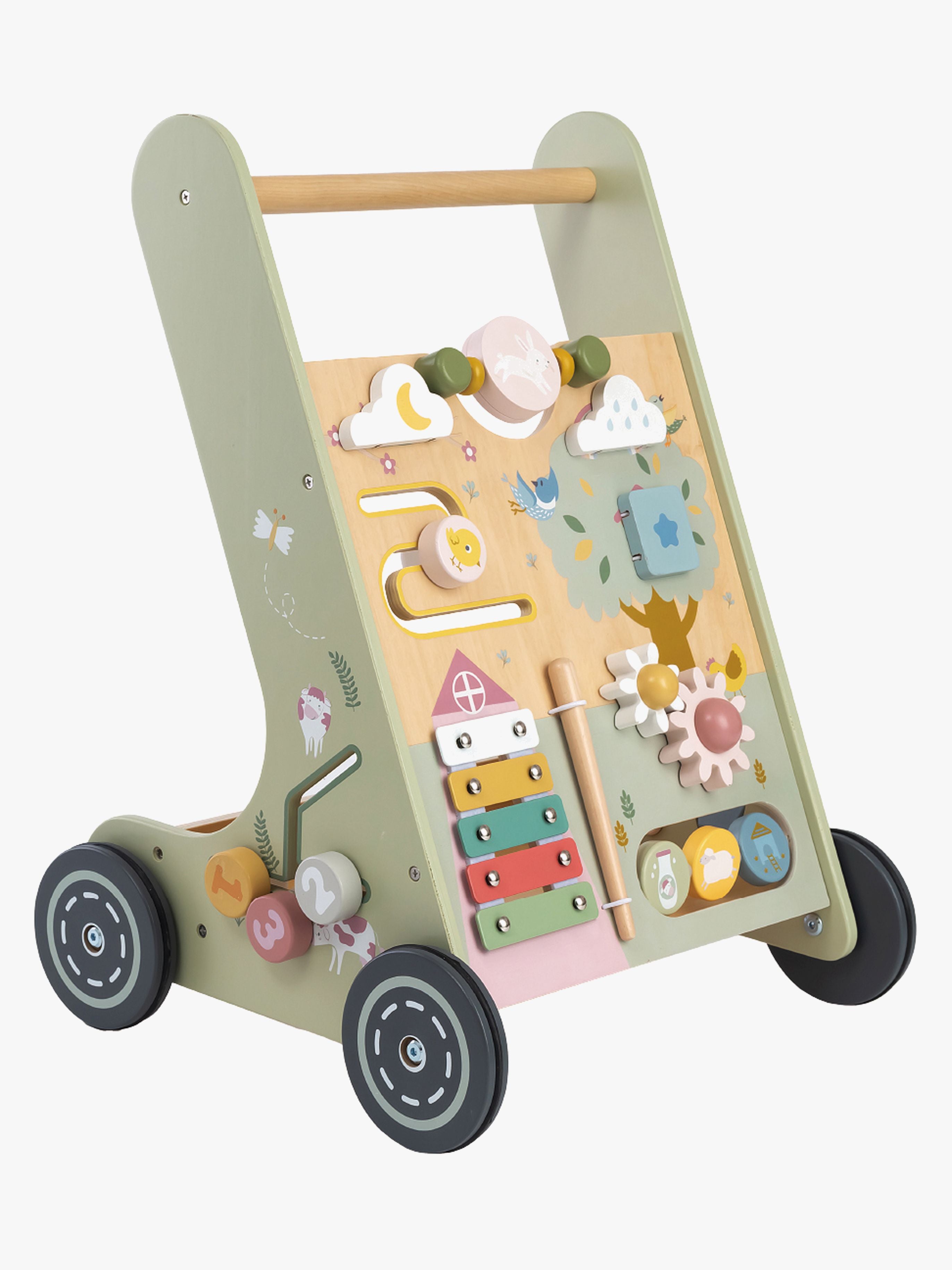 Gåvogn fra Alice & Fox med et detaljeret design. Den har mange sjove funktioner at udforske. Perfekt til børn, der lige har lært at gå. - Labyrint. - Kuglebane. - Match former. - Spejl. - Tandhjul. - Praktisk opbevaring. - Gummidæk. - Sikker at bruge indenfor. - Perfekt til træning af dit barns hånd-øje-koordination og finmotorik. - CE-mærket. - Anbefalet alder: Fra 12 måneder. - Skal bruges under opsyn af en voksen.