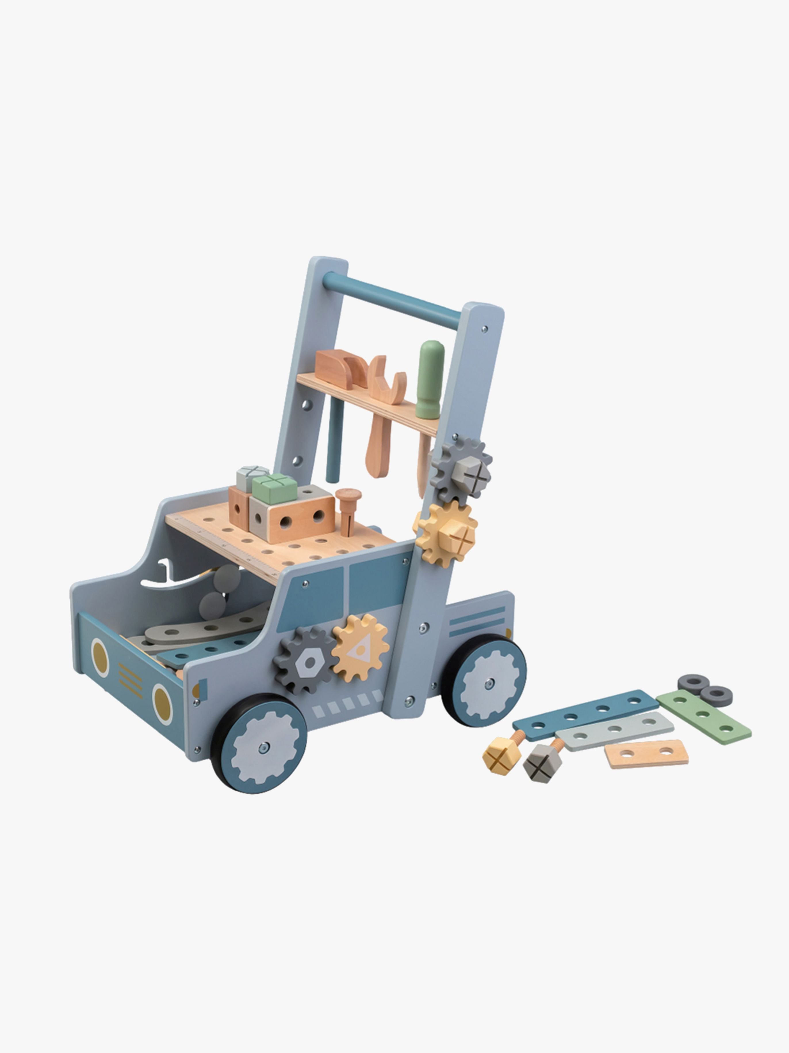 Gåvogn fra Alice & Fox med et unikt design. Den har en en masse sjovt funktion og tilbehør at udforske. Perfekt til sjov indlæring. - Indeholder: gåvogn, værktøj og flere bolte og plader, der kan kombineres på kreative måder. - Labyrint. - Roterende tandhjul. - Praktisk opbevaring. - Egnet til indendørs brug. - Perfekt til træning af dit barns hånd-øje-koordination og finmotorik. - CE-mærket. - Anbefalet alder: Fra 2 år. - Metal, MDF, krydsfiner, massivt træ.