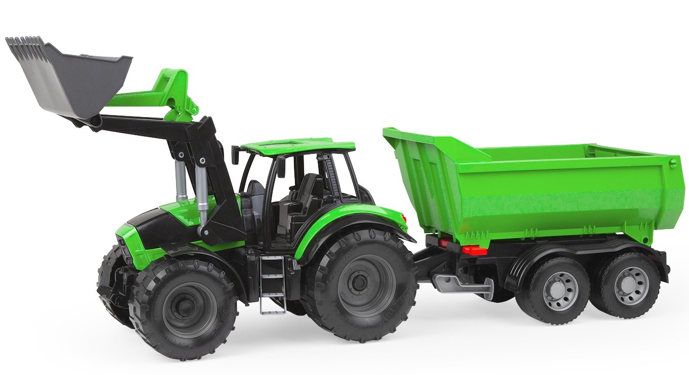 LENA® WORXX Traktor Deutz-Fahr Agroton 7250 TTV med påhængsvogn. 5 mm galvaniserede stålaksel Traktorens skovl og arm kan justeres og låses fast Låsbar tippelad med bagklap. Længde: 74 cm Egnet til indendørs og udendørs brug Velegnet til de små fra 3 år.