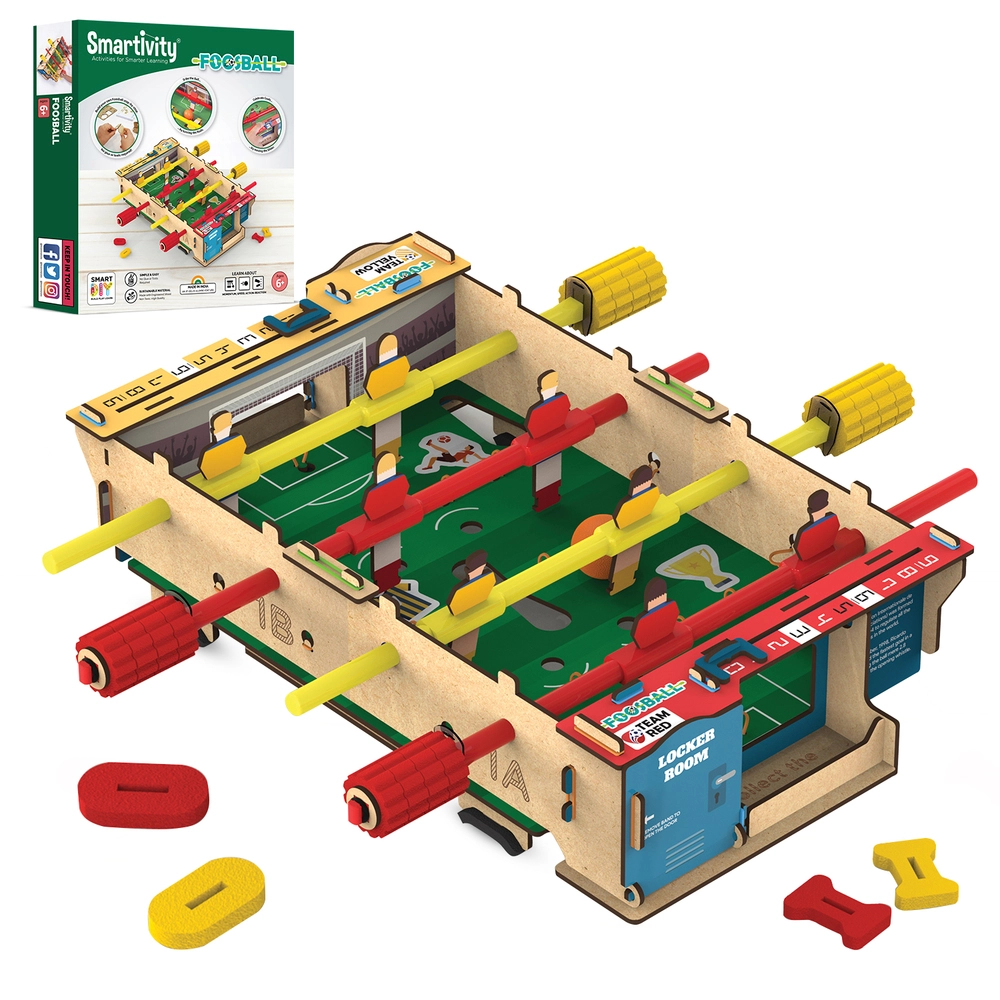 Byg dit eget bordfodbold! Saml din egen bordfodboldbane trin for trin med de medfřlgende trćstykker og den letforstĺelige instruktion. Nĺr banen er klar, kan du udfordre dine venner mĺ den bedste fodboldspiller vinde! Byg, spil og scor mĺl! Perfekt ti