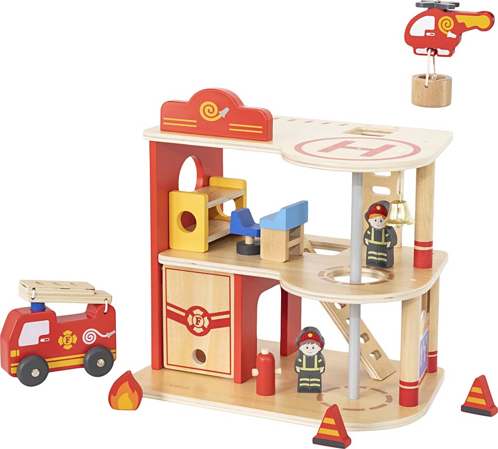 Slip fantasien lųs med denne detaljerede brandstation fra Viga, der giver bųrn mulighed for at...