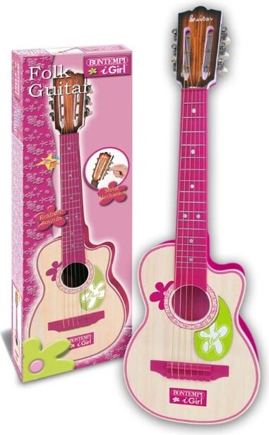 Bontempi - Lille Børneguitar I Træ - 70 Cm - Pink