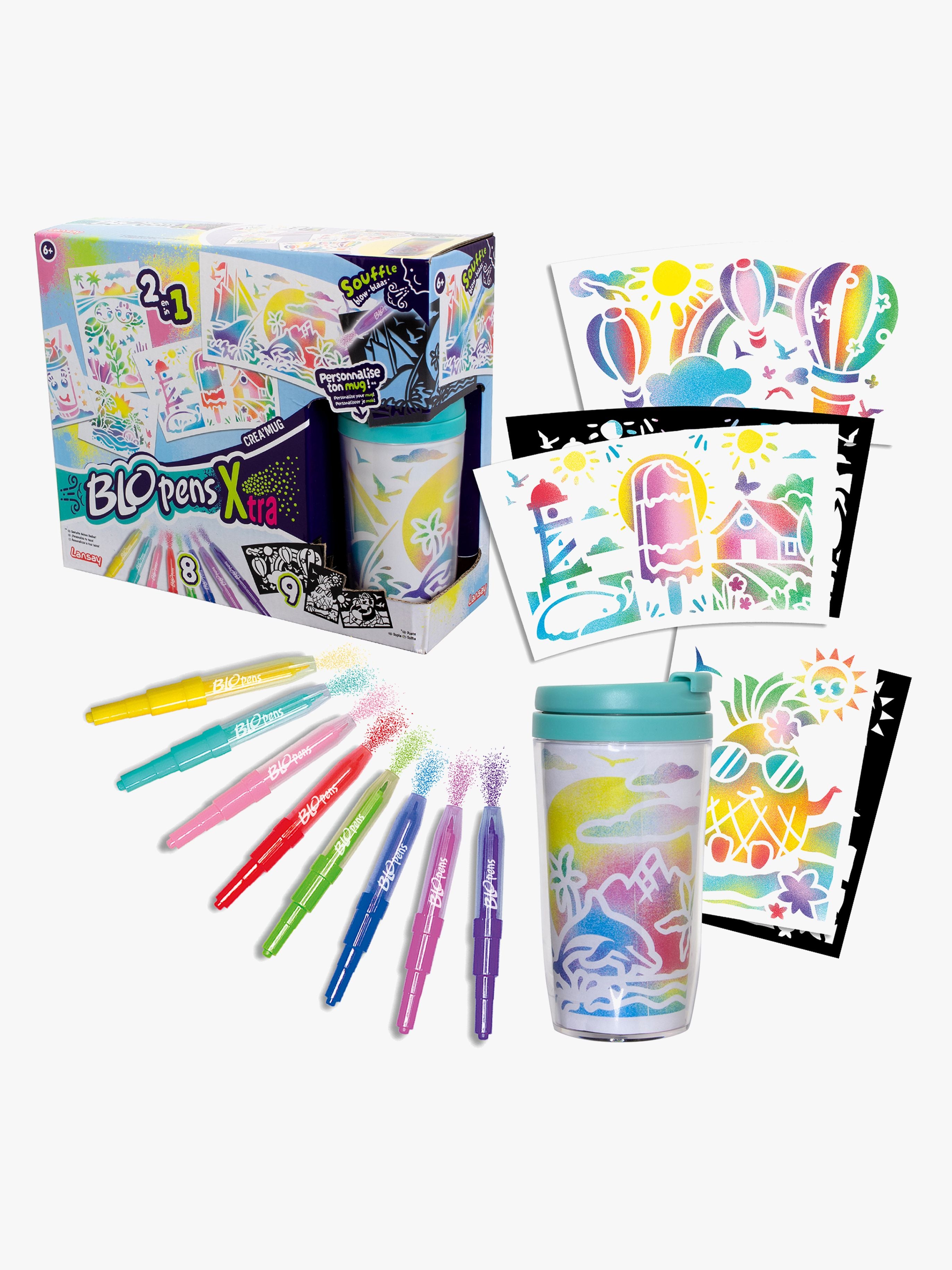 Sjovt kreasæt fra BLOpens med blæsepenne i flotte farver. Det har en kop med et praktisk låg og seje stenciler til at pynte med. Perfekt til kreative aktiviteter. - Indeholder: 8 blæsepenne, 2 kopper, 9 stenciler. - Farverige motiver. - Skab unikke designs. - Praktisk låg. - Slip kreativiteten løs. - CE-mærket. - Anbefalet alder: Fra 6 år.