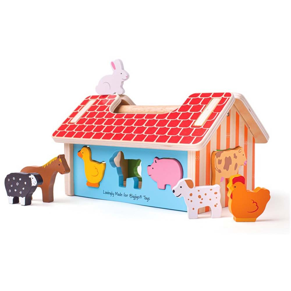Oplev alt det sjove ved gården med denne farvestrålende Bondegård sorteringskasse med 11 legestykker. Børn vil have det sjovt med, at matche hvert dyr til dets unikt formede plads på gårdens vægge. Når alle dyrene er sikkert inde, kan taget fjernes, og