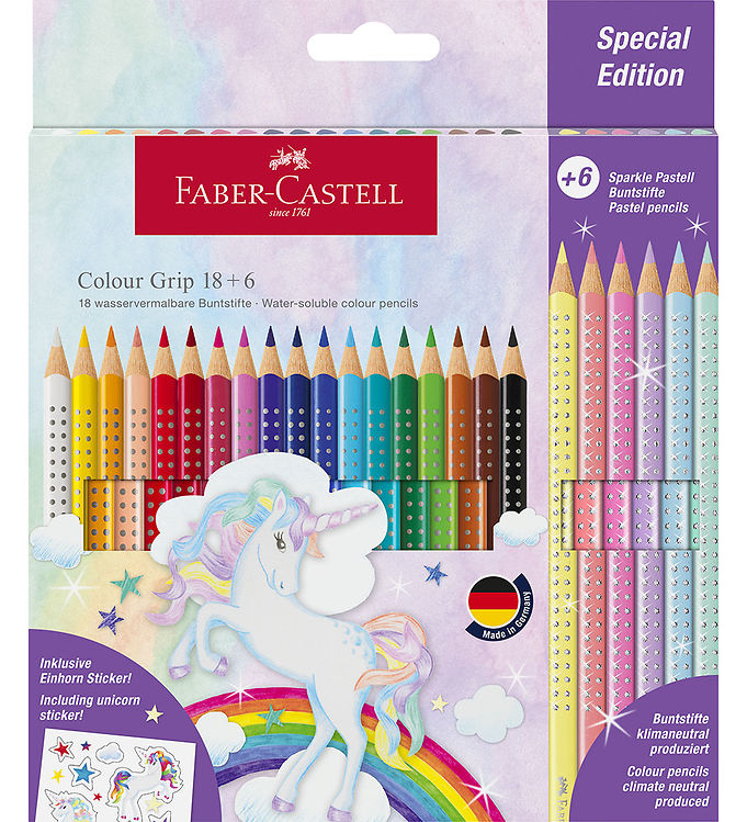 Faber-Castell Farveblyanter - Trekantet - Grip Unicorn - 18+6 st