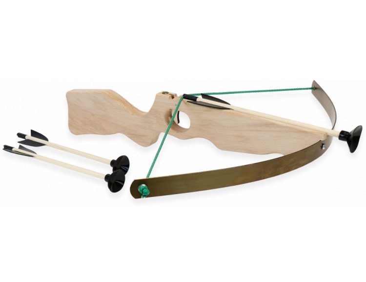 Armbrøst med pile og spændfjeder i stål Denne smukt udførte armbrøst i træ og stål, er ideel til rollespil. Stå på lur bag et træ, du kan høre vinden piber i de tomme dåser, der står på græsplænen, du dukker frem bag træet og fyrer 1, 2, 3. Alle er de ram