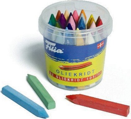 Du kender de gode gamle, firkantede oliekridt fra skoletiden.  Her får du en hel bøtte med 32...