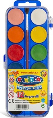 Akvarelfarver Sæt Med Pensel - Watercolours - 12 Farver - Carioca