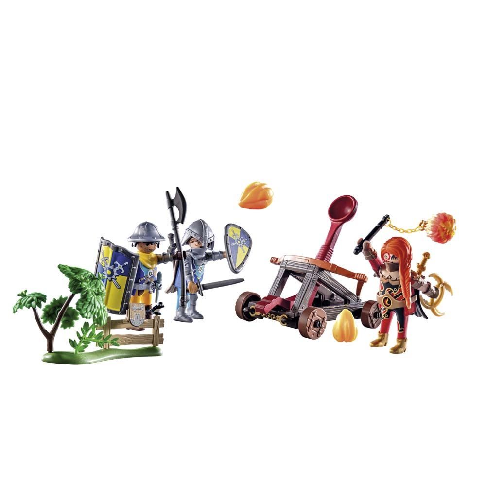 Bevæbnet med en katapult og kraftige ildkugler forsøger Pyralia, Burnham Raiders ildvogter, at passere den novelmorianske vagtpost. Der er masser af legesjov for små ridderfans med de spændende Novelmore-legesæt fra PLAYMOBIL. Burnham Raiders skyr ingen
