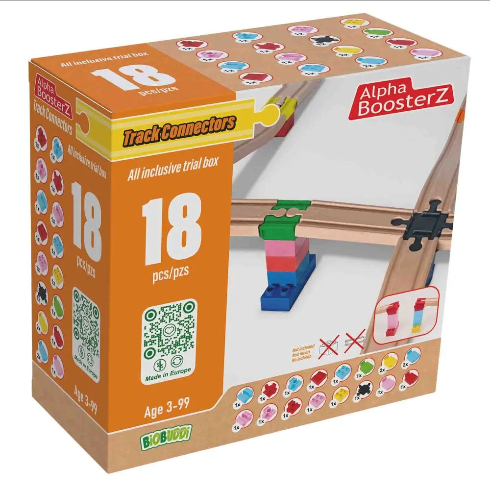 Alpha Booterz er designet til at vćre lette at bruge og samtidig utrolig fleksible. De specielt designede sporforbindere gřr det muligt at forbinde skinnerne pĺ utallige mĺder, sĺ du kan bygge komplekse og detaljerede baner. Udforsk forskellige ruter, kur