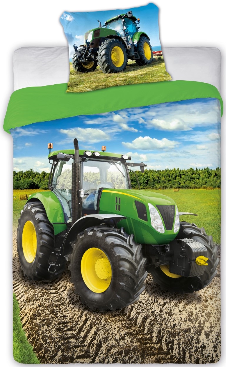 Grøn traktor Sengetøj 140x200 cm - 100 procent bomuld