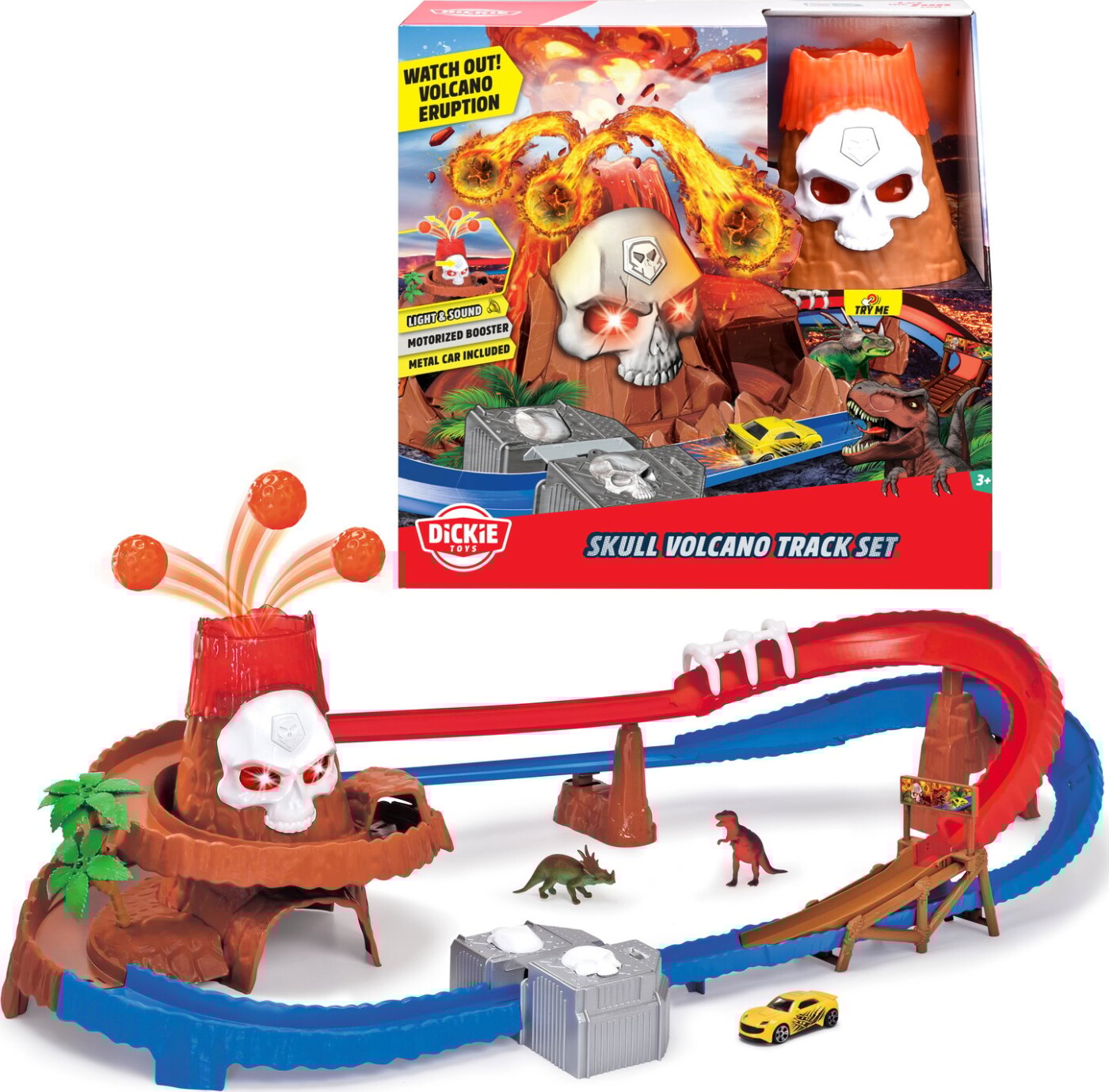 Dickie Toys Skull Vulcano Track Set har lys, lyd og blinkende øjne, med en breakout-funktion, der...