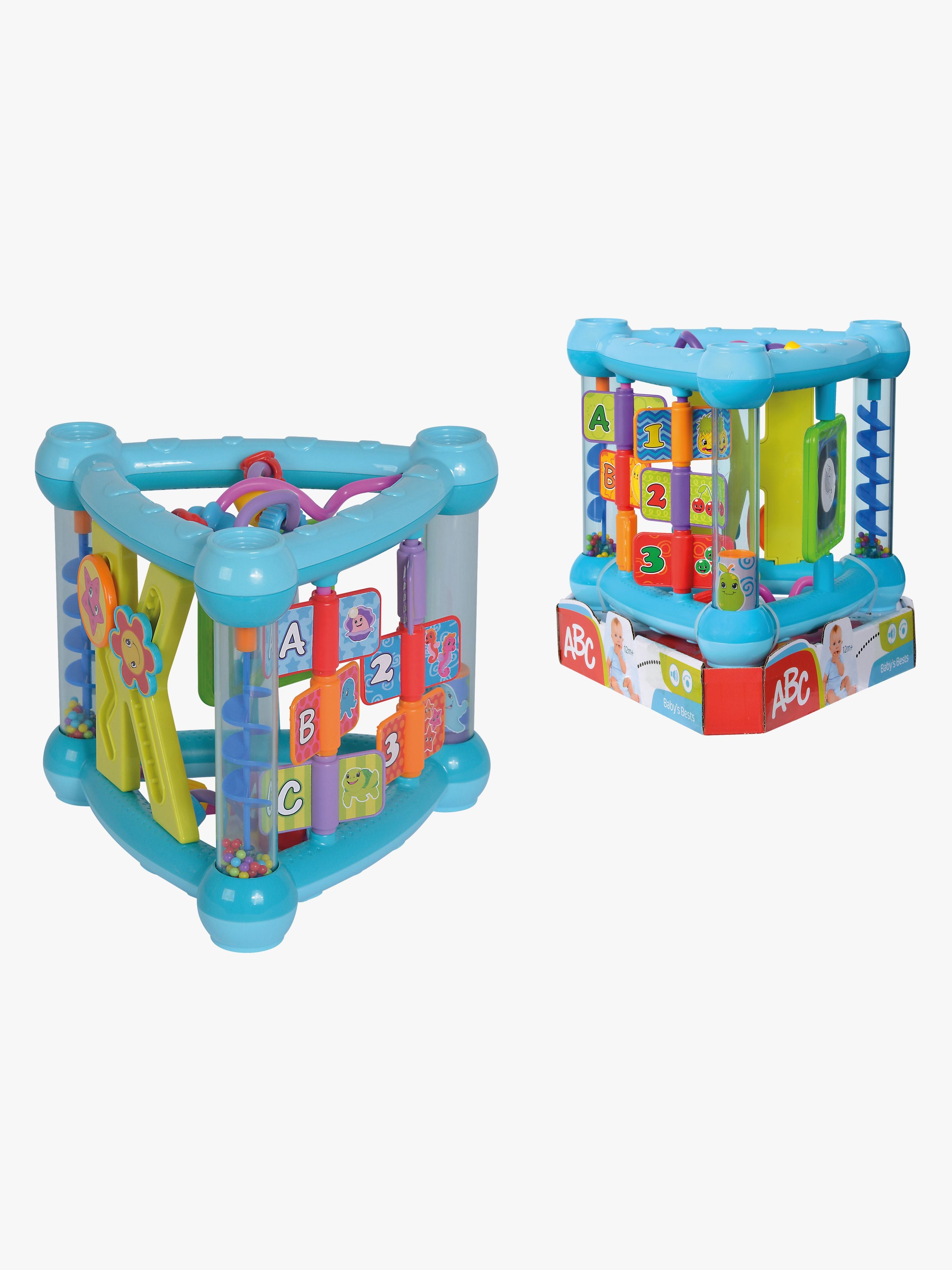 Aktivitetstrekant fra ABC med mange sjove funktioner. Perfekt til at stimulere dit barns udvikling og indlæring. - Forskellige motoriske legemuligheder. - Huskespil med roterende tal, bogstaver og dyr. - Perlelabyrint. - Regnmager. - Spejl. - Lydeffekter. - Farverigt design. - Perfekt til træning af former og farver, hånd-øje-koordination og finmotorik. - CE-mærket. - Anbefalet alder: Fra 12 måneder. - Plastik.