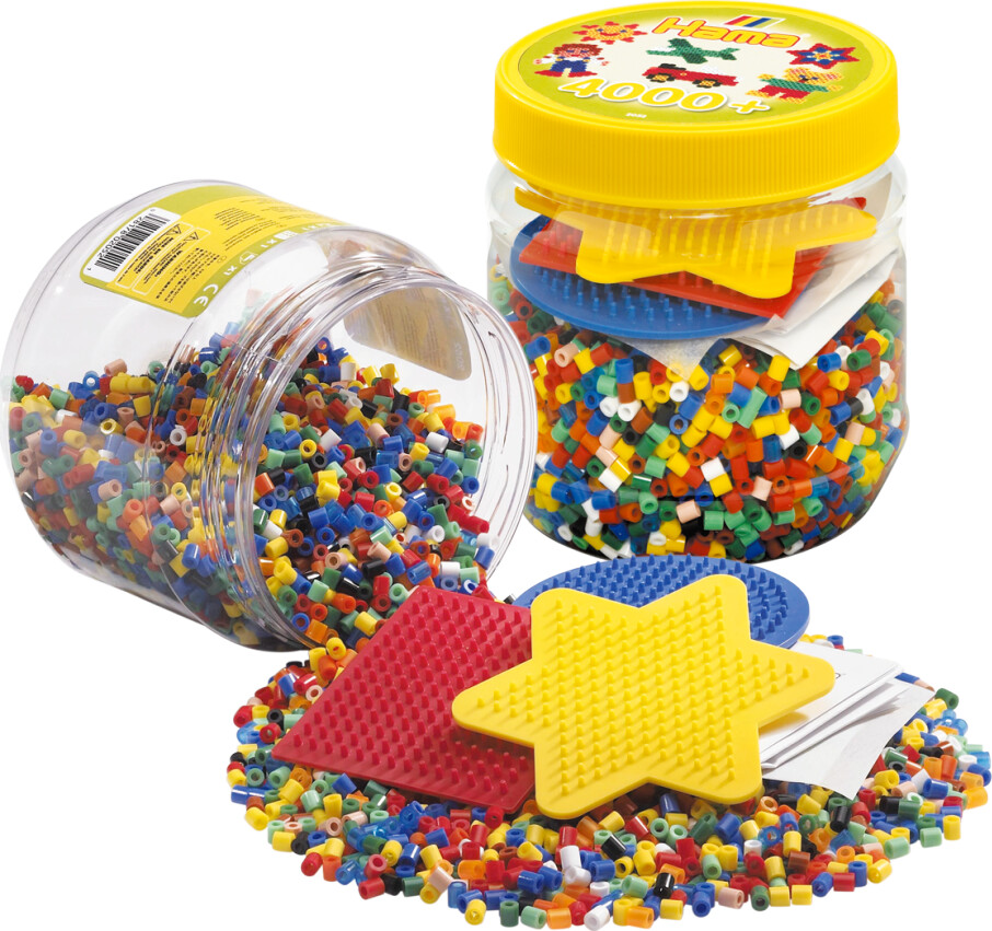 Her får du en hel spand med 4000 Hama Midi perler og 3 fine perleplader i forskellige figurer!...