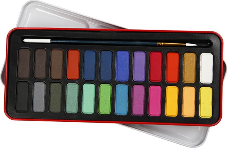 Akvarel Farver - 24 Vandfarver Og Pensel Til Børn Og Voksne