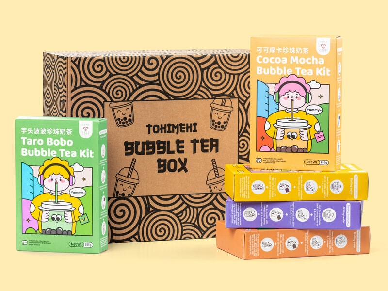Giv en spændende smagsoplevelse med denne gaveæske fyldt med forskellige bubble tea kit fra Tokimeki! Perfekt til alle bubble tea-entusiaster, som ønsker at nyde forskellige smagsvarianter derhjemme.