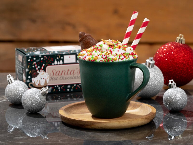 Inviter en du holder af til vinterens bedste varme chokolade! Dette sæt fra Hedh-Escalante Chocolatier indeholder lige, hvad du har brug for til to kopper varm chokolade med mælkechokolade, nissedrys, miniskumfiduser, nissepralinéer og sugerør.