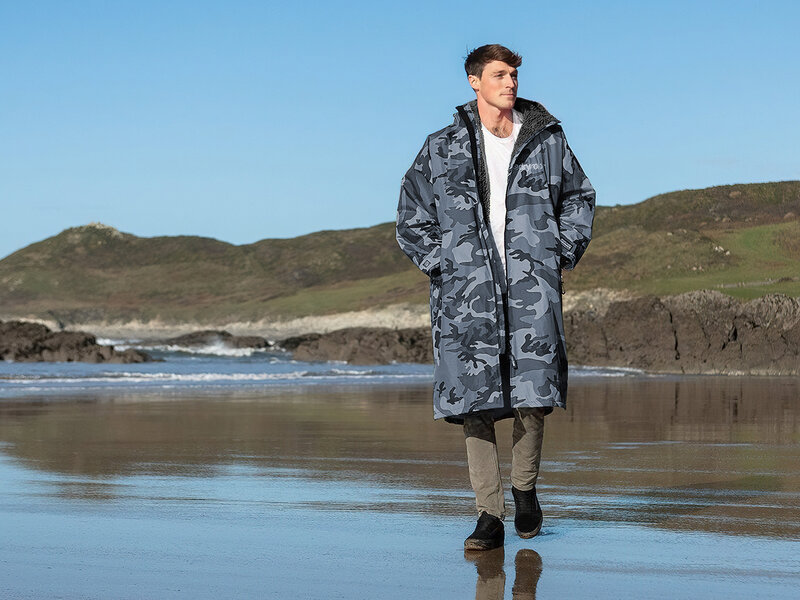 Året rundt-surfere, vinterbadere, hundeejere, maratonløbere og hockeyforældre - se her! Denne camofarvede kåbe vil ændre jeres liv. Dryrobe Longsleeve er en vejrbestandig og ekstremt varm omklædningskåbe, der er perfekt til de fleste udendørsaktiviteter.