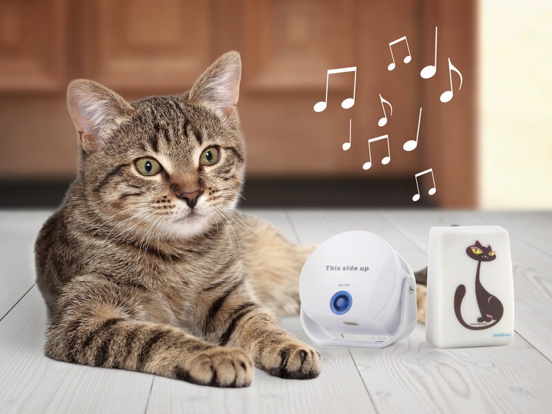 Nu slipper du for at lave hul i døren til en kattelem. Køb denne ringklokke til din missekat i stedet for!