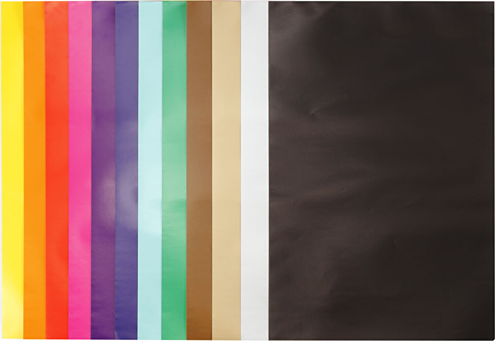 Flot glanspapir i stærke farver med hvid bagside. Glanspapiret kan bruges til kreative projekter,...