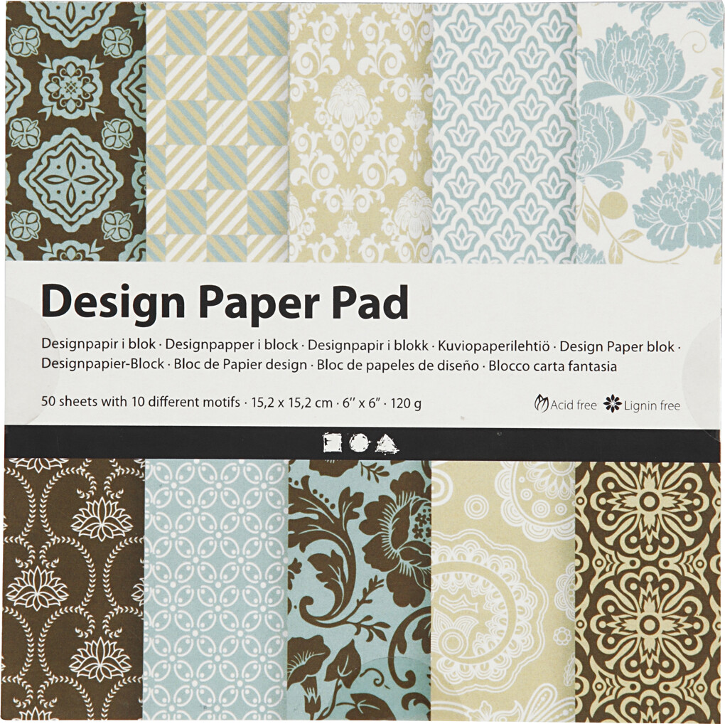 Designpapir I Blok - 15,2x15,2 Cm - 120 G - Lyseblå - Brun - 50 Ark