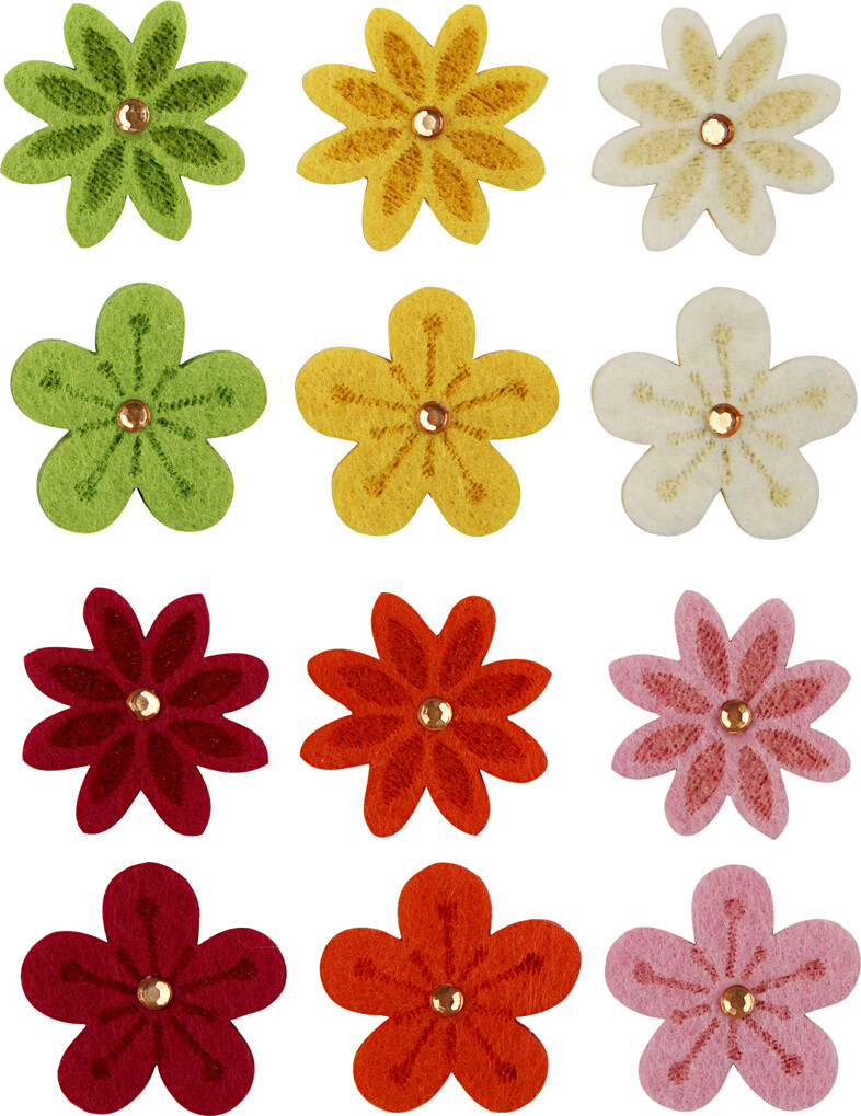 Få et sortiment af farverige filtblomster til dit næste kreative projekt! Hver af de 16 blomster...