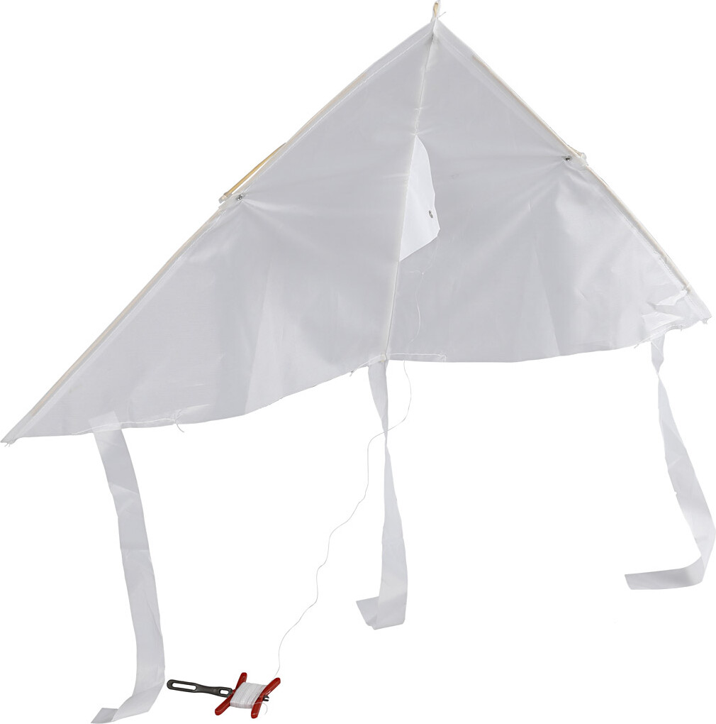 Det er sjovt at flyve med drager på en blæsende sommerdag! Her får du en hvid drage, der flyver...
