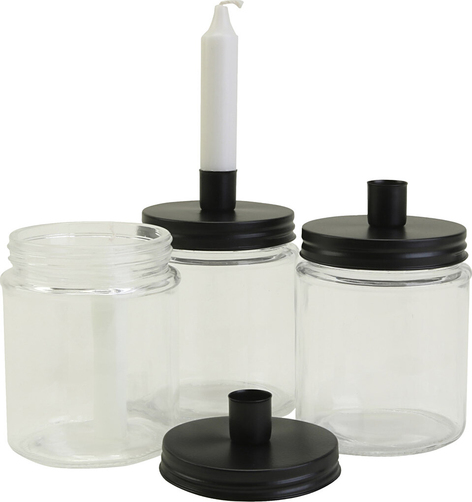 Glas i kraftig kvalitet med skruelåg og lysholder. Leveres med 6 stk. bedelys á 11 cm, der kan...