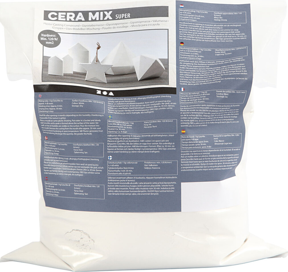 Støbemassen blandes med vand - blandingsforhold: 1 kg støbemasse til ca. 4 dl vand. Ca. 6 gange...