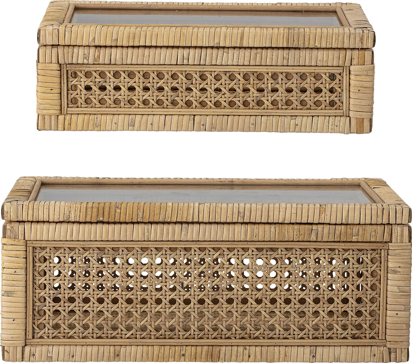 Bloomingville - Lally æske Med Låg - Natur - Rattan - 2 Stk