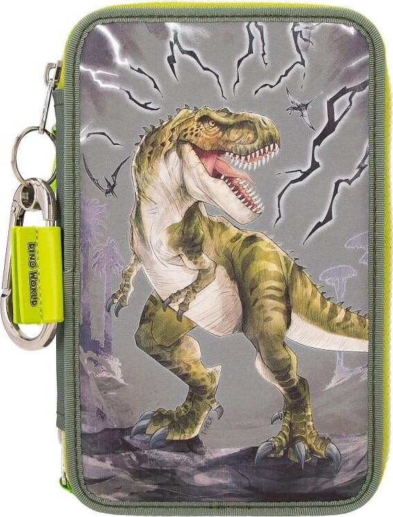 Dino World - Trippel Penalhus Med Indhold - Reflektiv