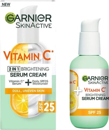 Garnier SkinActive Vitamin C 2-in-1 Brightening Serum Cream er et 2-i-1 hudplejeprodukt,...