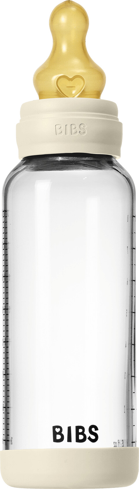 Bibs - Glass Baby Bottle Round Latex Medium Flow - Ivory - 240 Ml