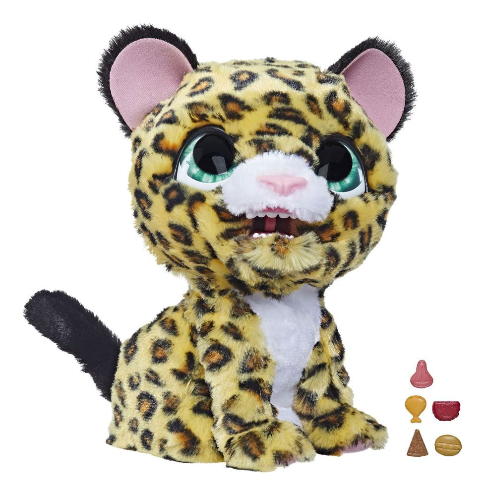 FurReal Lil Wilds Lolly Leopard Interactive Animatronic Plyslegetøj er et eksotisk kæledyr, som børn fra 4 år og opefter vil elske at fodre, lege med og putte med. Forestil dig at have en leopardkilling som kæledyr! Børn kan fodre hende med hendes fem god