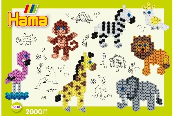 Æsken indeholder Ca. 2.000 perler, 1 medium sekskantet stiftplade nr. 329, motivark, vejledning og strygepapir.