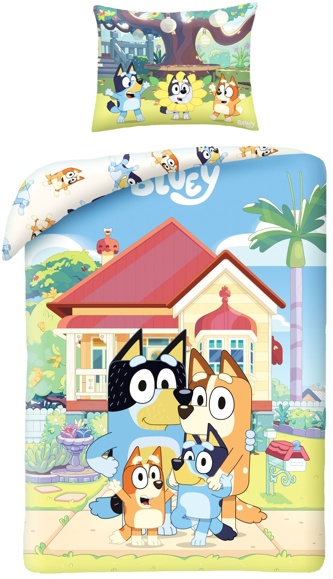 Gųr sengetiden hyggelig og sjov med dette farverige Bluey sengetųj med Bluey, Bingo og hele familien. Perfekt til bųrn, der elsker de sjove og hjertevarme historier fra den populęre tv-serie. Sengetųjet er fremstillet i 100 procent bomuld, hvilket sikrer