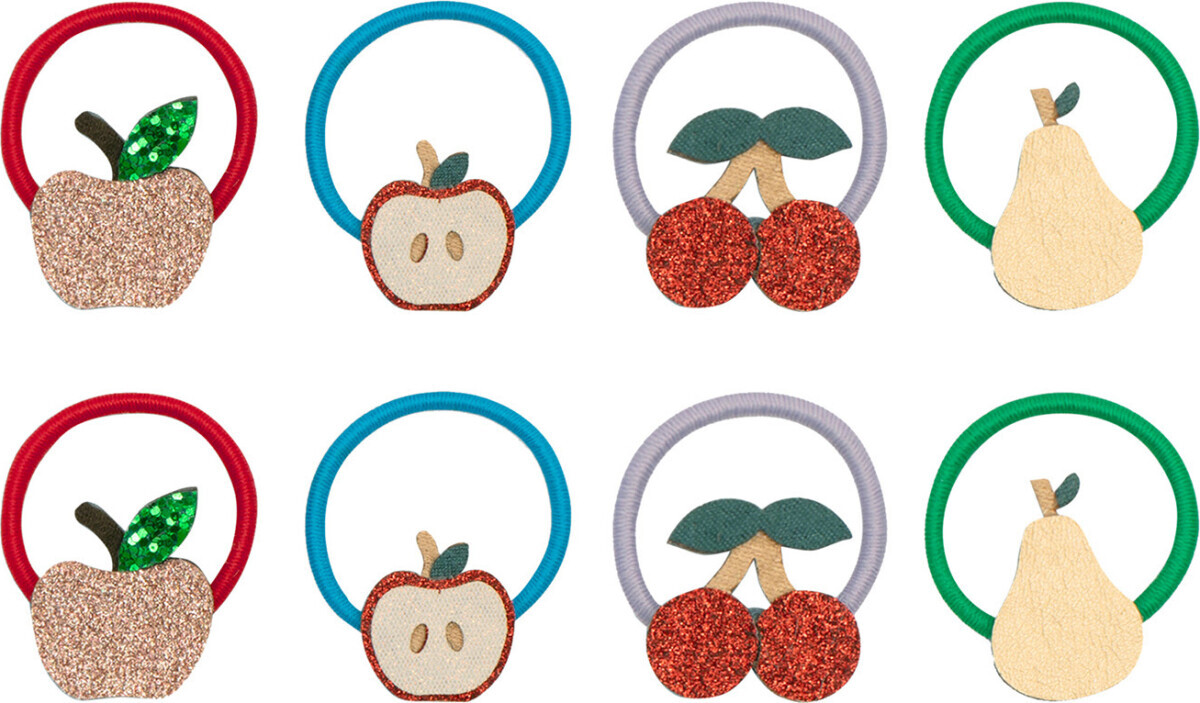 8 Hårelastikker Til Børn - Mini Frugter Med Glitter - Mimi & Lula