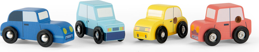 Dette sęt med fire farverige retrobiler i trę er designet specielt til de mindste bųrn og...