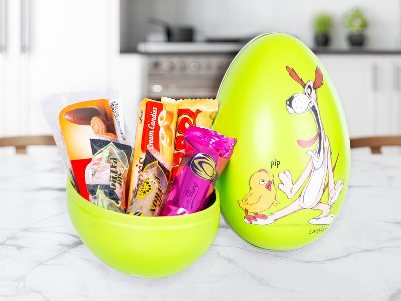 Bare fordi du er voksen, betyder det ikke, at du er udelukket fra æggejagten! Dette elegante metalæg med motiv af Lasse Åberg er fyldt med slik og passer perfekt til alle slikglade påskefejrere. Ægget sælges usorteret.